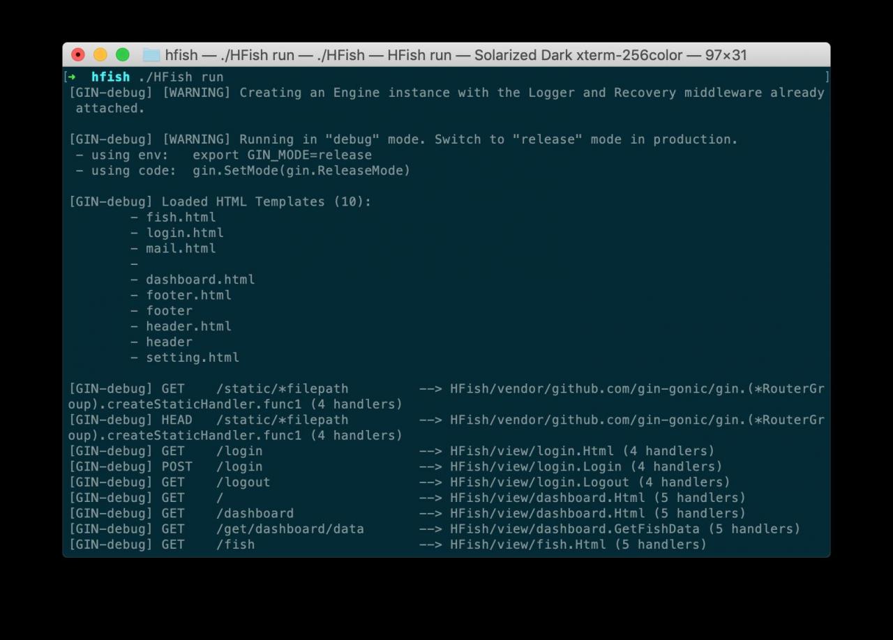 执行 ./HFish run 启动服务