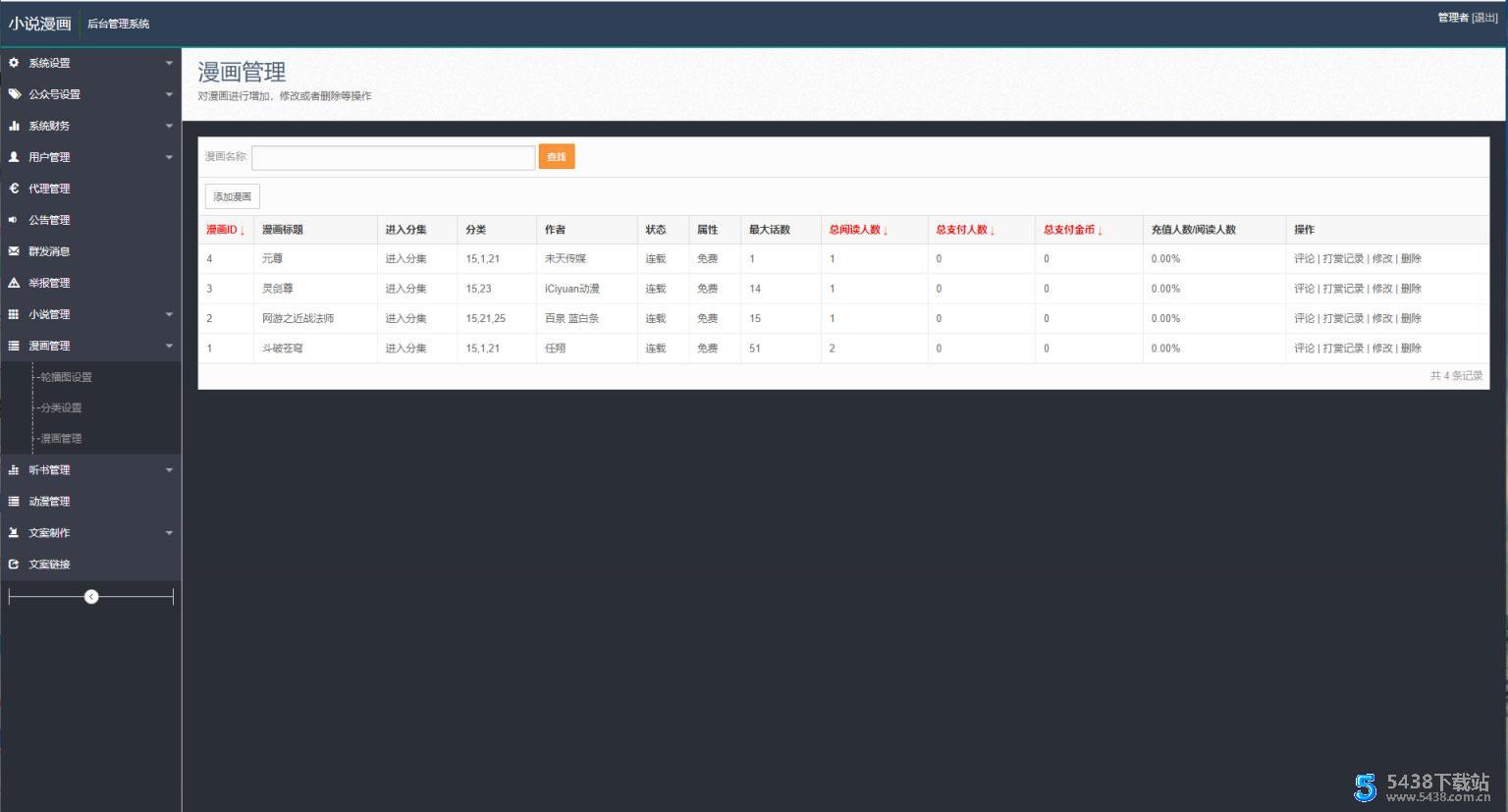 TAG php四合一小说漫画听书视频网站源码 带采集