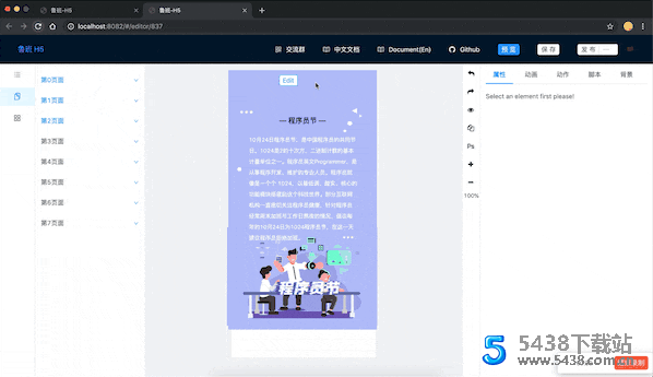 鲁班H5是基于Vue2.0开发的,通过拖拽的形式,生成页面的工具,类似易企秀、百度H5等工具。