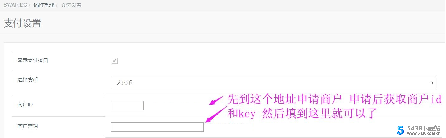 2.登录网站后台,点击“插件管理”,再点击“支付设置”,会有显示一个“易商支付”,点击后面的“设置”按钮。