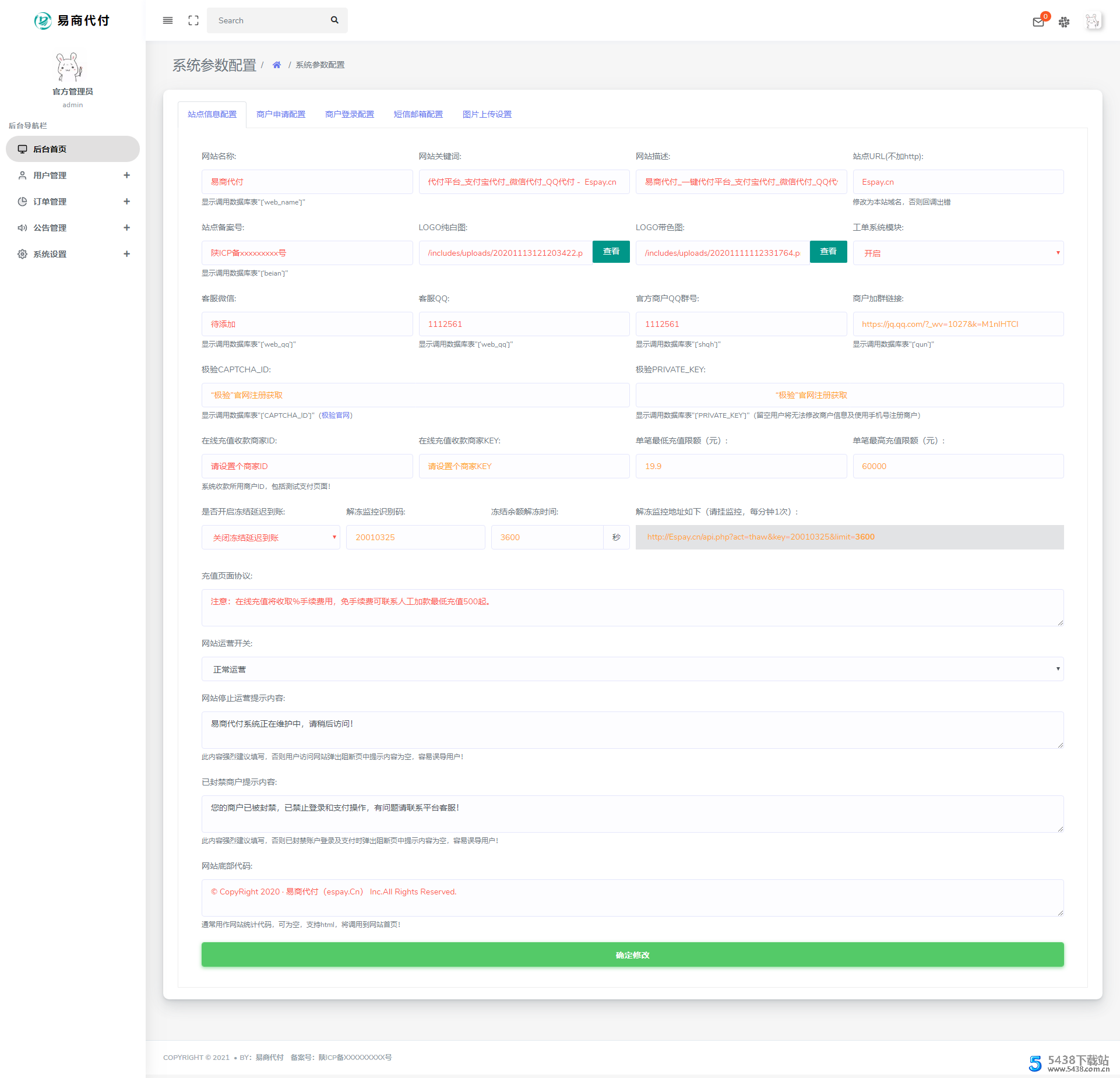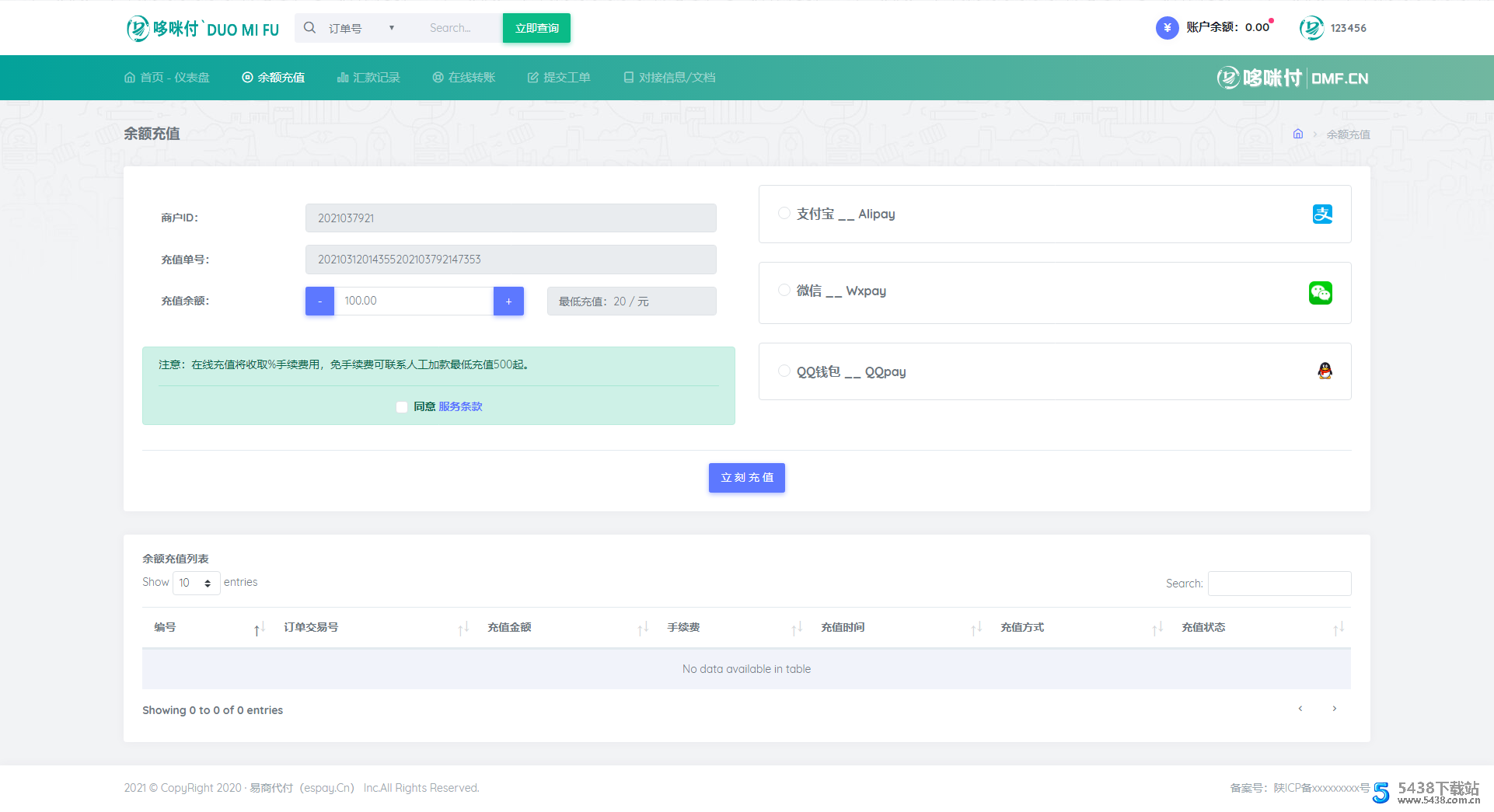 平台充值收款已对接易商付(三方进件通道):Www.Espay.Cn 可进件自己的商户进行使用下户简单!