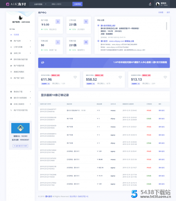 在官方的会员中心内找到“爱K支付系统授”然后 在线授权填好域名和QQ确认