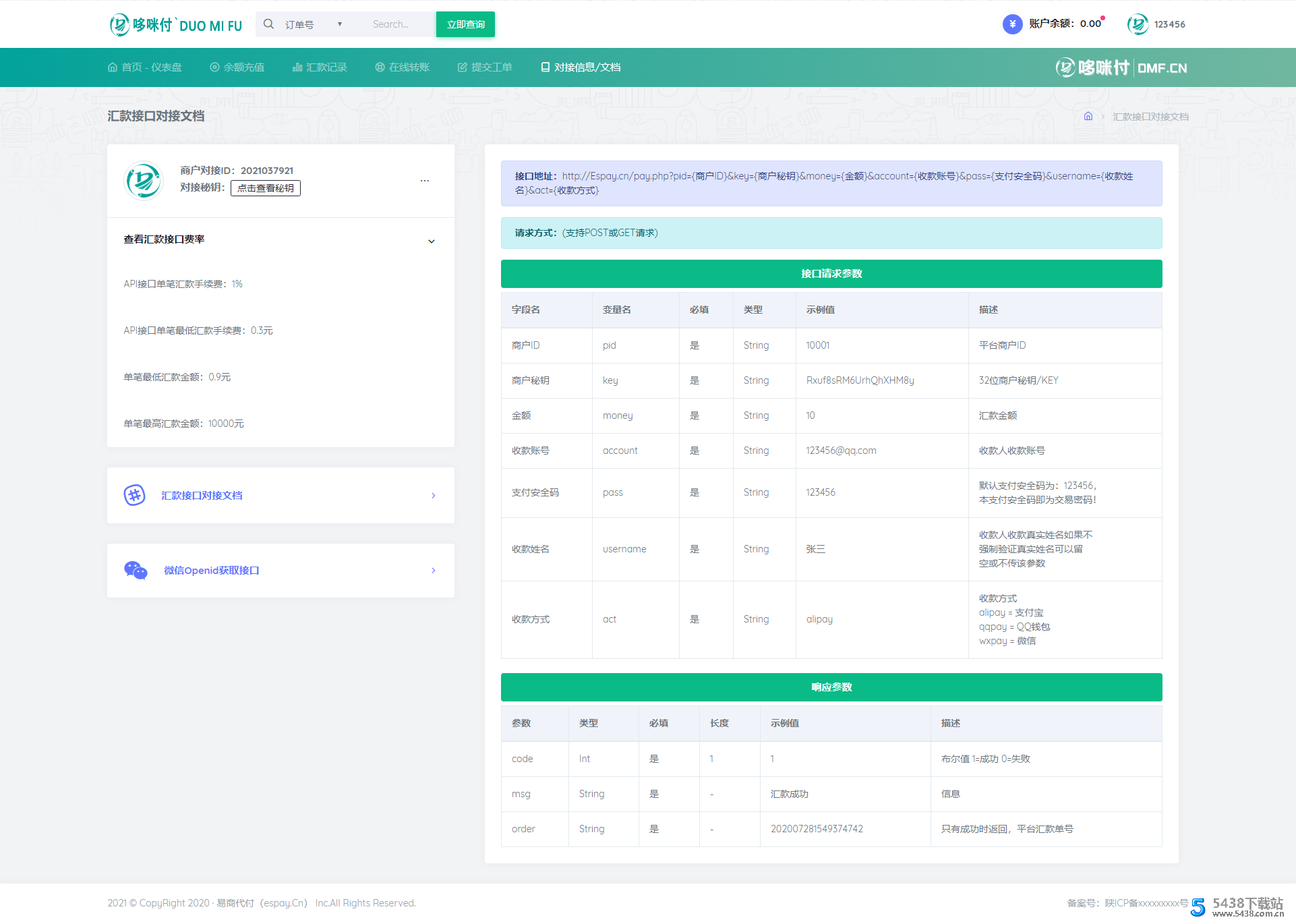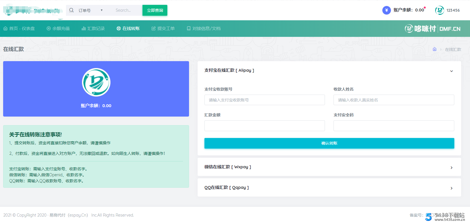平台充值收款已对接易商付(三方进件通道):Www.Espay.Cn 可进件自己的商户进行使用下户简单!