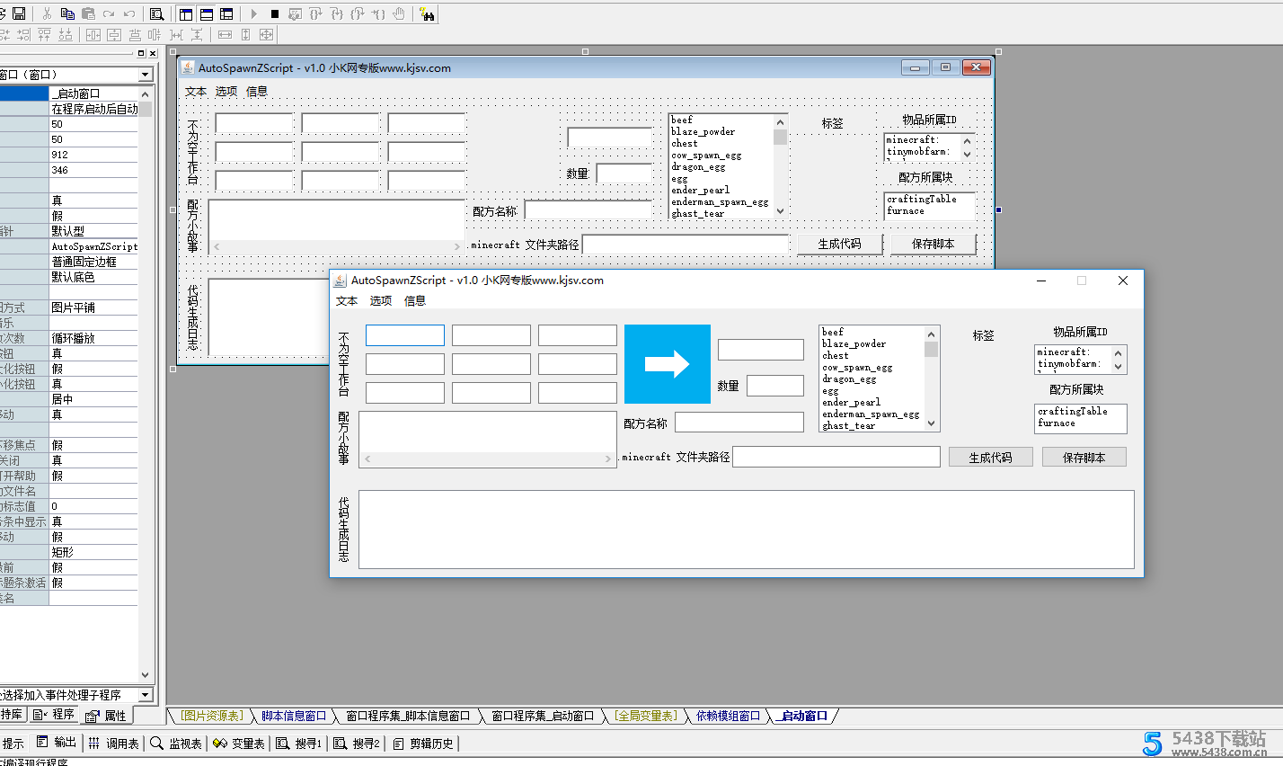 保存的脚本文件名称默认设置为了 AutoSpawnZScript.zs 这样测试起来比较容易,我的整体思路是全部的测试数据都使用真实的数据,每个操作步骤都完全还原整套流程,先把整体框架搭出来然后在后续的版本升级中添加新的功能和配方列表。