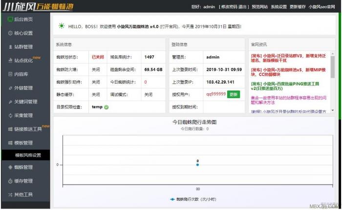 2.系统设置:蜘蛛池的基本设置(访问开关、跳转、统计等等)