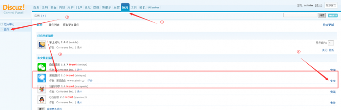 2、登录后台–》进入应用–》插件–》未安装的插件中找到该插件–》安装