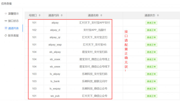 登录爱铭微付平台获取;例如汇付接口为:101,通道代码:alipay