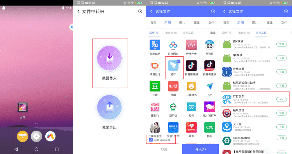 2.我要导入,点击钉钉,左下角勾选自动安装,或者直接浏览器下载钉钉钉钉助手在导入的常用工具栏里面有,直接下载安装,文末也有链接。
