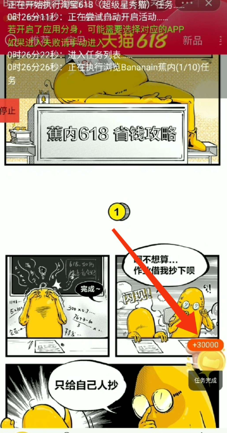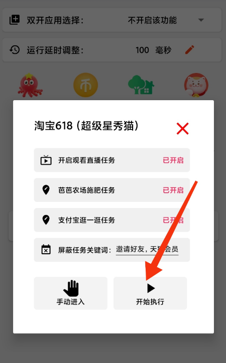 给悬浮窗和无障碍权限后选择要执行的任务点开始就行了!这里以淘宝618为例。