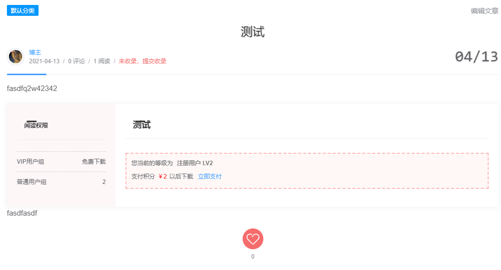 启用配置好插件。插件支持 Tepass , 如果启用了 Tepass 资源中心会采用Tepass 付费的文章字段。否则采用默认行为。