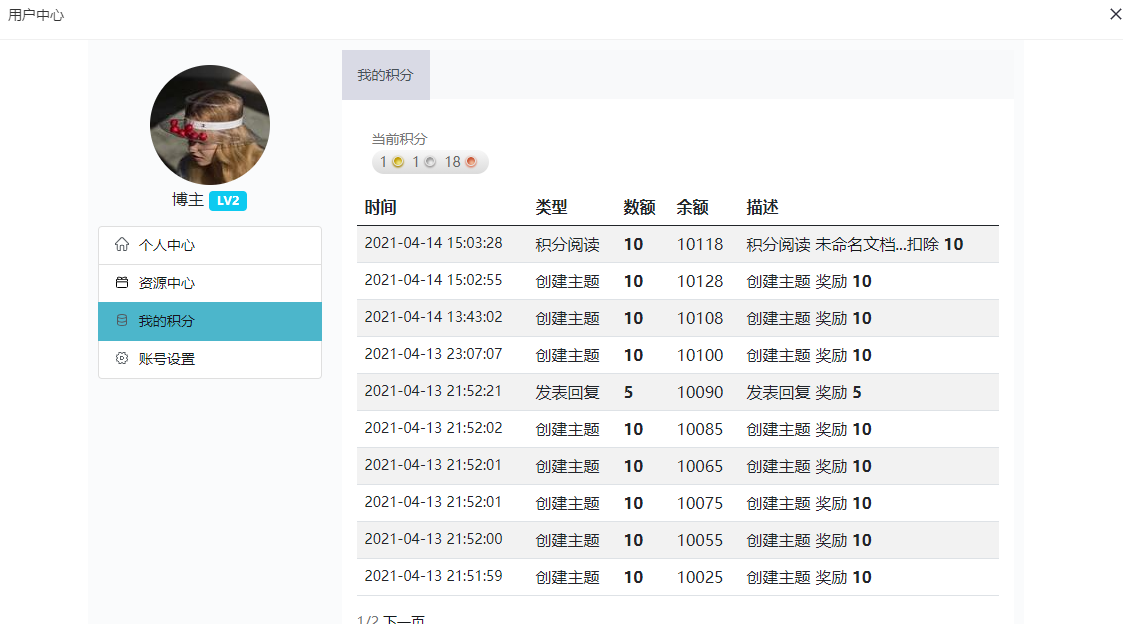 默认有一套积分机制,如果设置为负值,表示对应行为为 扣除 积分